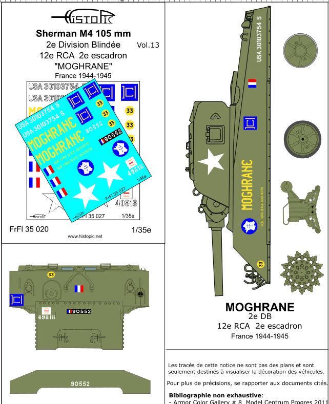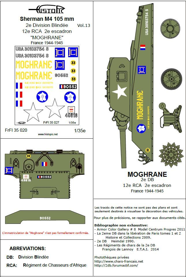 Décalques pour le Sherman M4 105mm "Moghrane" du 12e RCA France 1944-1945.